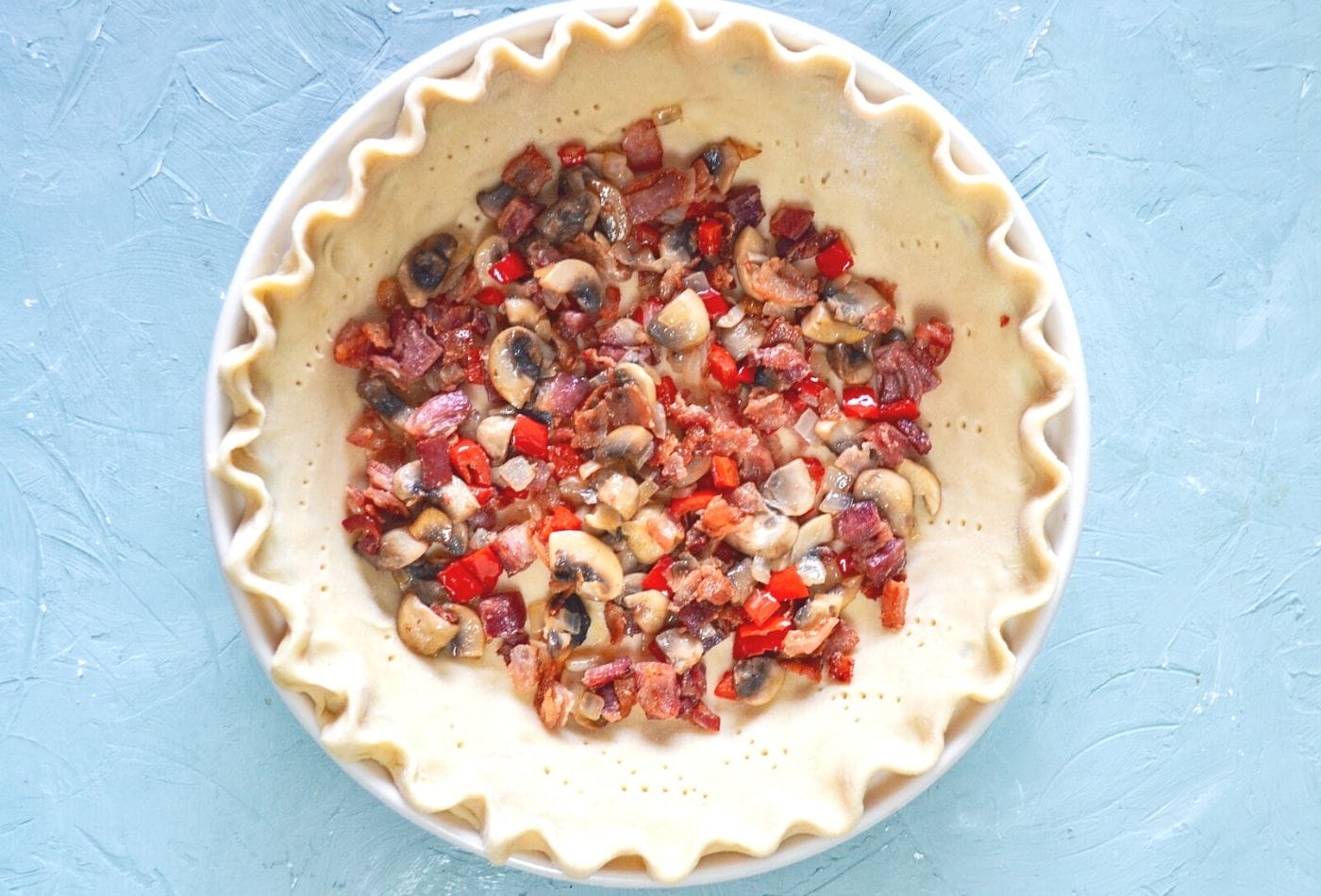 Bacon, Red Pepper, Mushroom, and Cheddar Quiche