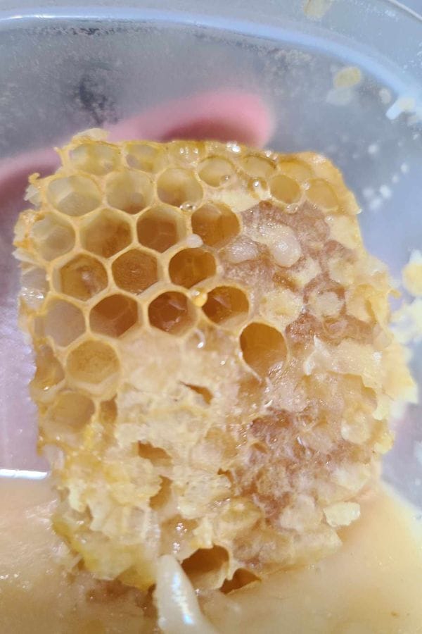 Taste honey: You can let the kids taste a dip of honey from a spoon or make it even more fun and let them chew it from a little bite of the comb. It has a different experience biting into the beeswax and having the honey pour out of it. Lots of sensory experiences are going on there.