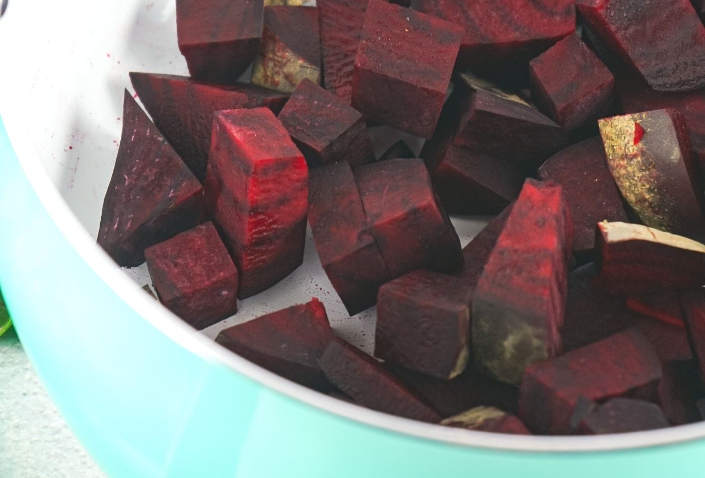 - It’s VITAL that you scrub your beets and trim them before slicing them and boiling them. Your eggs will turn brownish green if you don’t.