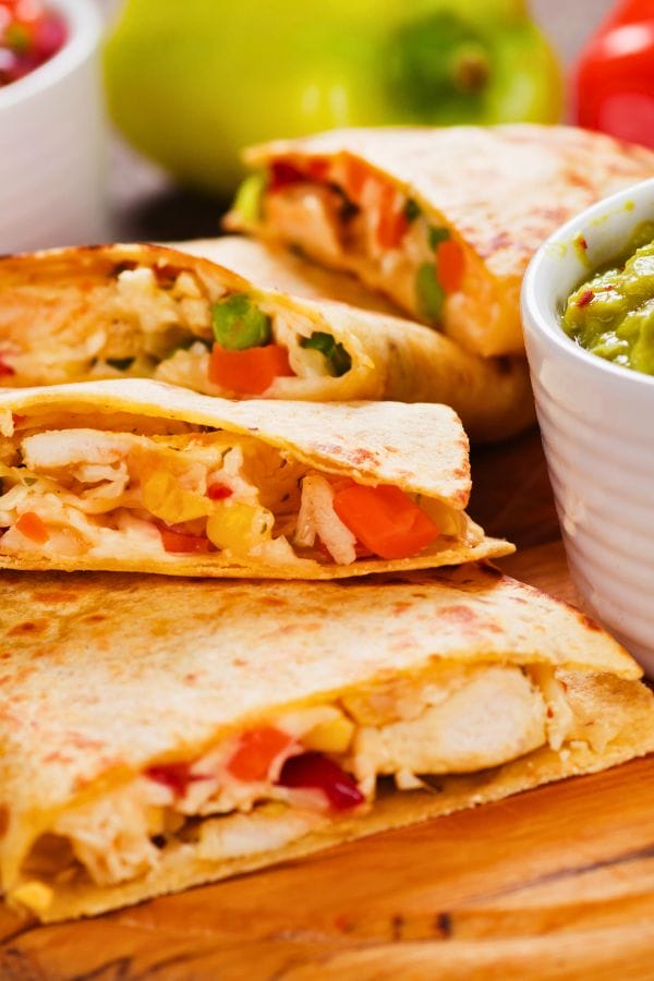 - Chicken Quesadillas: Use the chicken sparingly with cheese and veggies in a crispy tortilla.