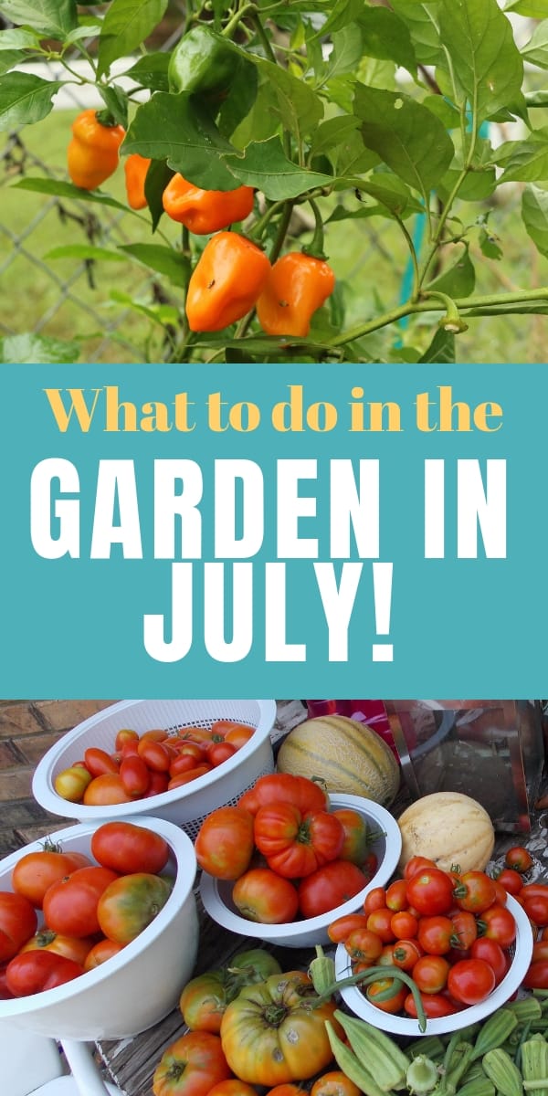What to do in the garden in July? The vegetable garden is producing a lot and getting out of hand at the same time, so there are plenty of garden chores to do. July is HOT in Oklahoma! I guess bugs like it HOT because we have tons of them in our preschool garden. Pest control is on the list! To find out what to plant each month, check out this guide.